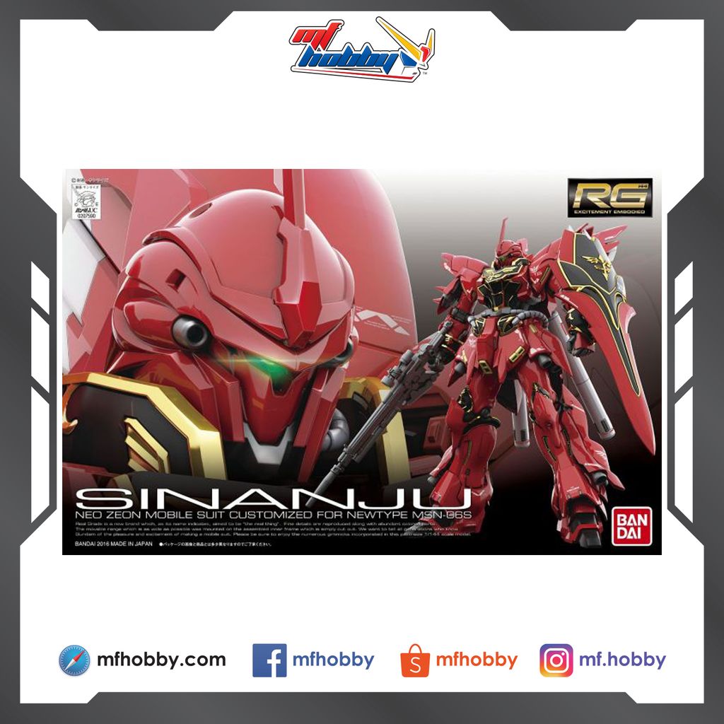 "Gundam Unicorn" have been waiting a long time for this one!  The Sinanju finally gets a Real Grade kit and wow is it detailed.  The emblem parts are golden-plated for superior detail and the red parts feature a smooth glossy finish for extra impact! All parts come molded in multiple colors with stickers provided to add extra colors and markings.
