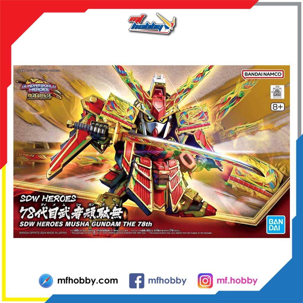 The new generation of Musha Gundam proudly enters the "SDW Heroes" battle lineup with new "Kirako" parts! The Kirako parts are made with an in-mold technology that performs injection molding and film attachment at the same time, to produce parts that have a rich, gleaming appearance! "Kira steel" is used for the sword, and the stance of drawing a sword from its sheath can be easily reproduced thanks to the superior range of motion in his elbows! You can also use the Kirako parts included with SDW Heroes Onmitsu Gundam Aerial! Order yours today!